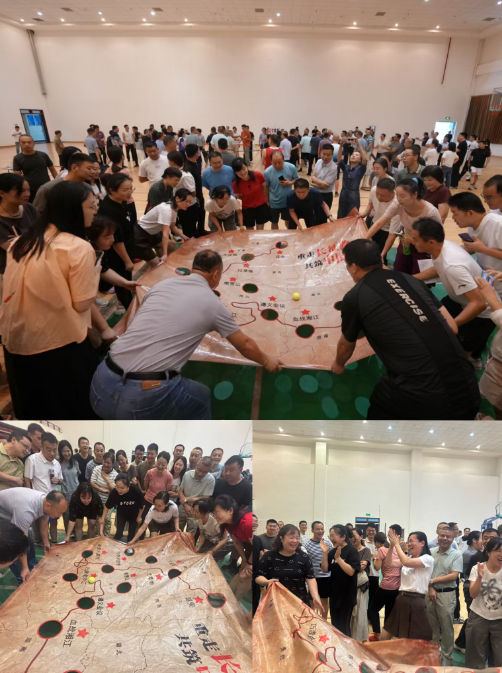“重走长征路”团队协作: 刘新军、樊晓东、郑晨子、程华等八位同志组成的团队,在面对需要极度耐心和默契的滚珠项目时,沉着冷静,沟通顺畅,通过精准配合共同引导小球顺利“会师”,深刻体验了团队信任与协作的重要性。